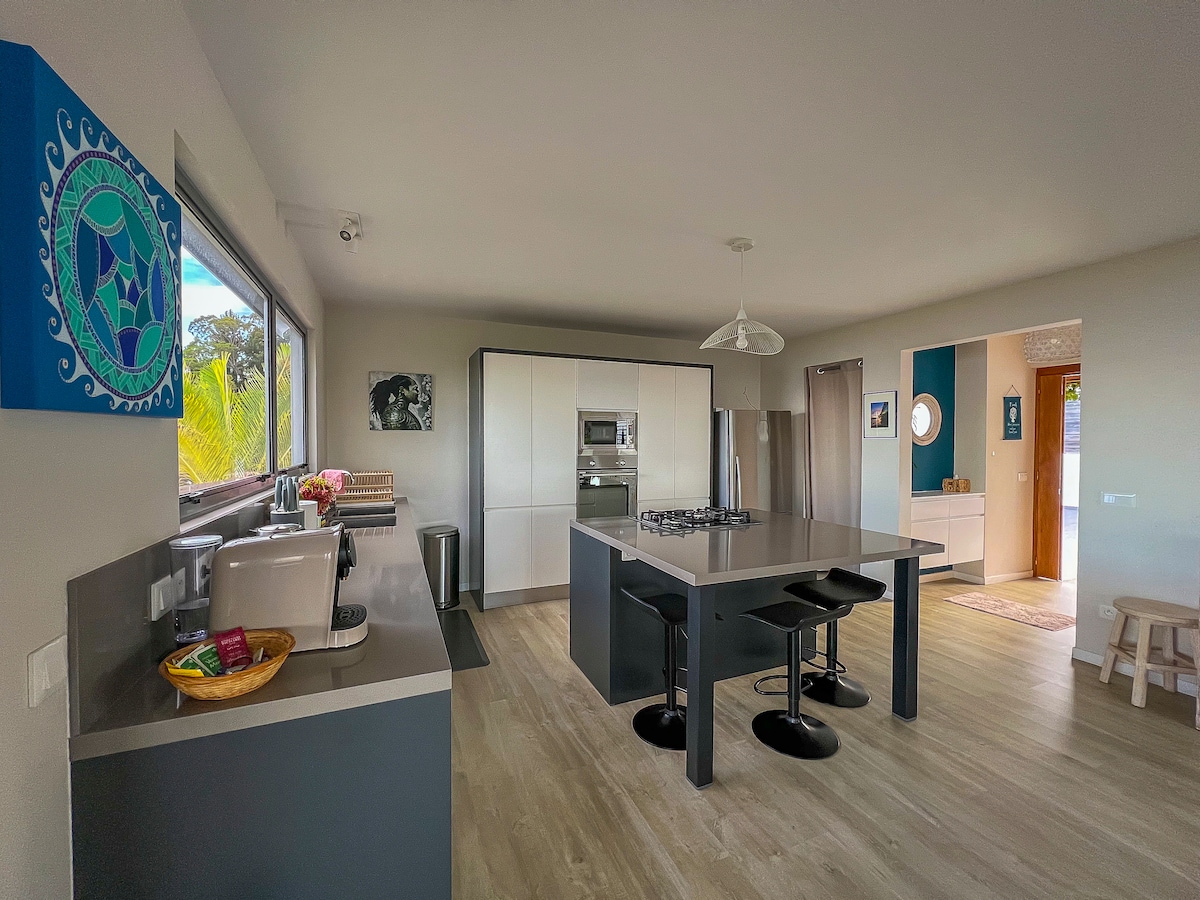 Our charming 85m² house and its 22m² terrace offers you a breathtaking view of the magnificent island of Moorea. You can relax in comfortable spaces, while having the possibility of working thanks to a motorized desk and a second screen for a dual display with your laptop. The good internet connection will allow you to stay connected to your work. Come and live a unique experience in this house where comfort and vacation go hand in hand.