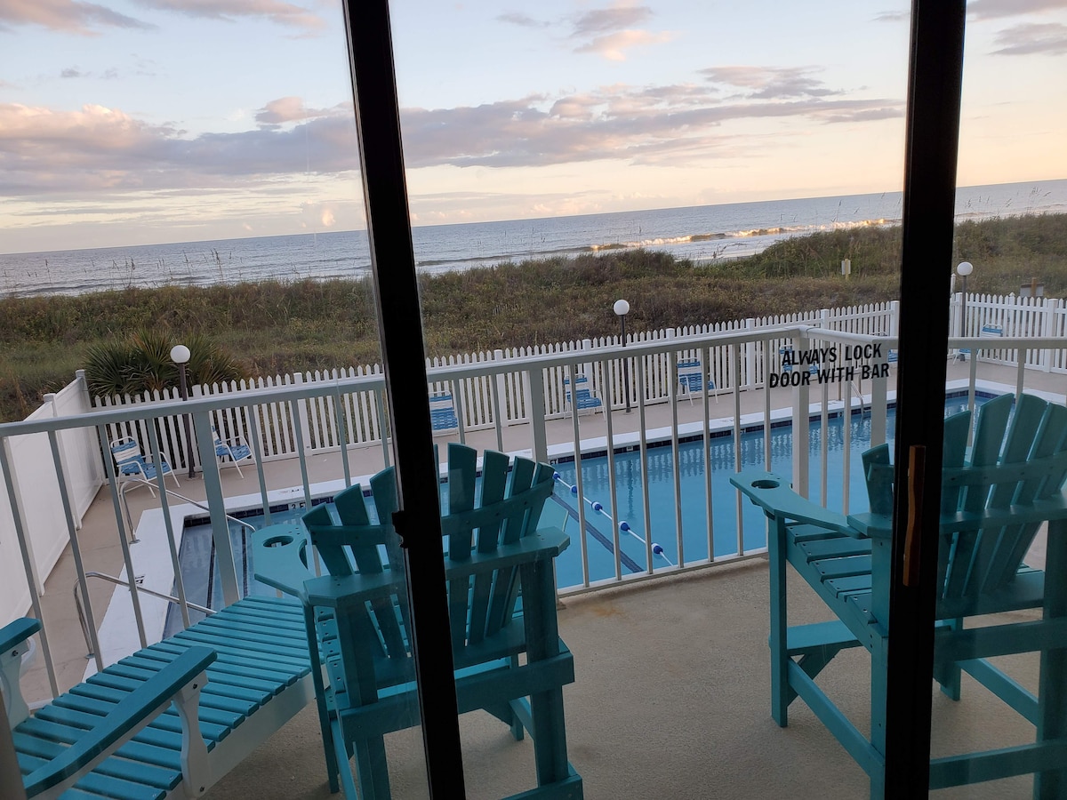 Casual beach decor at Windy Hill Oceanfront condo. Fresh, cozy and sparkling clean condo, updated kitchen with granite counters and all new appliances. Elevator. Secure WiFI and Smart TVs in every room. Use our beach toys, chairs, umbrellas to make your trip fun and relaxing. Relax on the large balcony, listen to the surf or take a few steps on the boardwalk to the ocean. Fresh crisp linens on beds upon arrival w/towels. Outdoor pool (unheated).