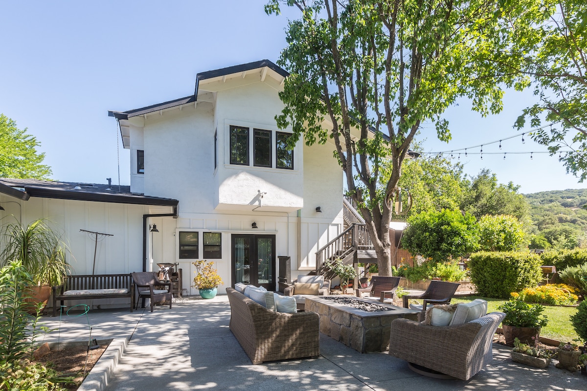 Heart of wine country with a farmhouse flare. Separate side entrance with hillside views. Minutes to downtown ( 1 mile), wineries, historical sights and foodie fun. Large 550 + ft. Studio with three beds, flat screen TV, couch, chairs, desk and bistro table. Feel free to utilize back yard, jacuzzi, fire pit, bikes, and more.TOT No. 3438N
