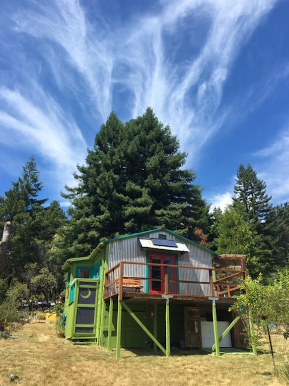 Overlooking a fern grotto and redwood valley, The Perch lets you experience nature up close. Come unwind and luxuriate in nature. Limited cell service. The room INSIDE has a bed, toilet, sink, mini-fridge, microwave, and electric hot water kettle. OUTSIDE a claw foot tub/shower, private deck & outside kitchen with a gas burner stove. Very rural. We live full-time on the property, and there are communal and private areas for guests. TOT#3345N, Permit#:THR18-0032