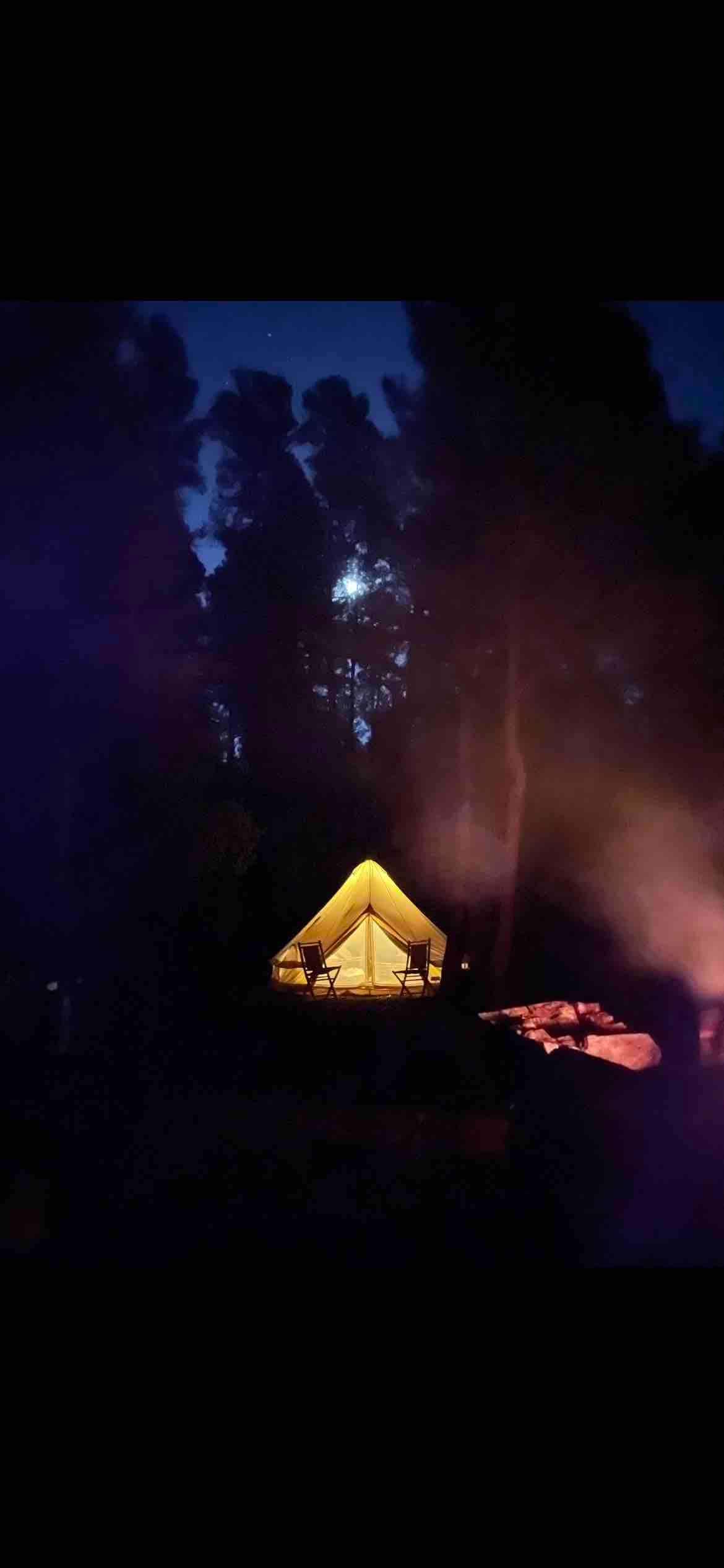 Tucked away in a private enclave on top of a mountain, the canvas bungalow offers a secluded, romantic escape. The bungalow is furnished with a queen bed, fresh linens, blankets, and pillows. A lantern, small bedside table, and light reading keeps things cozy inside. The compost toilet is steps away. There is a private hiking trail steps away with sweeping views of the valley and surrounding mountains. Note: • No campfires allowed • No potable water • Pets allowed (fenced-in area onsite)
