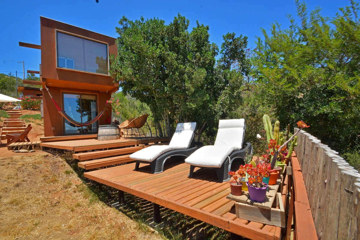 Vive la magia tiny, única en el Valle de Casablanca. A solo 1 hora de santiago y 15 minutos de viñas y restaurantes , disfrute de románticas puestas de Sol y el cielo estrellado. • Cama cómoda • Cocina totalmente equipada • Terraza privada con parrilla • Tinaja caliente bajo las estrellas • Wifi, Smart TV y aire acondicionado • Estacionamiento privado y entorno seguro Esta tiny house fue diseñada para inspirarte: pequeña en tamaño, enorme en experiencias.