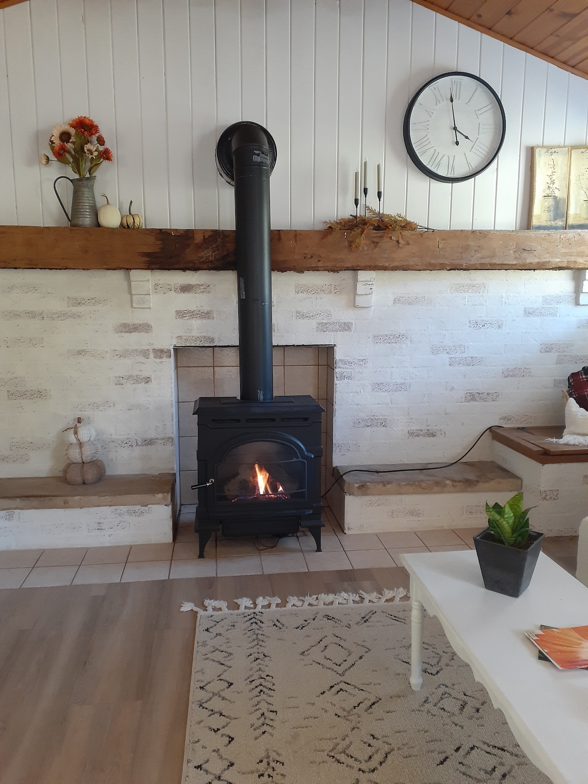 Black Rock Cabin is a historic Log Cabin that has been Completely Renovated. Featuring an open Main floor with living, dining and kitchen space. Upstairs is a full bedroom and bathroom. Experience the tile shower with its gentle rain head, then relax beside a crackling wood fire in the living room. Enjoy the corner kitchen with a stove, oven, fridge, microwave, and coffee maker. Sit at the rustic dining table or pull out bar stools at the counter.