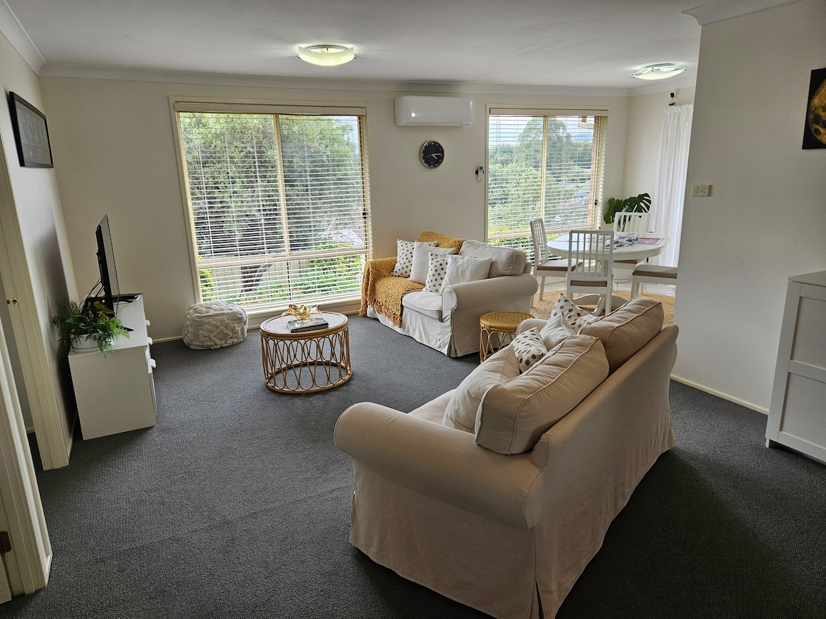 A cosy cottage perfect for a weekend away. The cottage sleeps four people but more comfortably two and is separate to the main house, perfectly set up for your privacy. We are walking distance from Bowral centre and a 10-15 minute drive to all the wineries the Southern Highlands has to offer. We are here to make your weekend one to remember, indulge in our cosy cottage, sit back and watch TV and have a glass of wine from your complimentary bottle of wine on arrival.