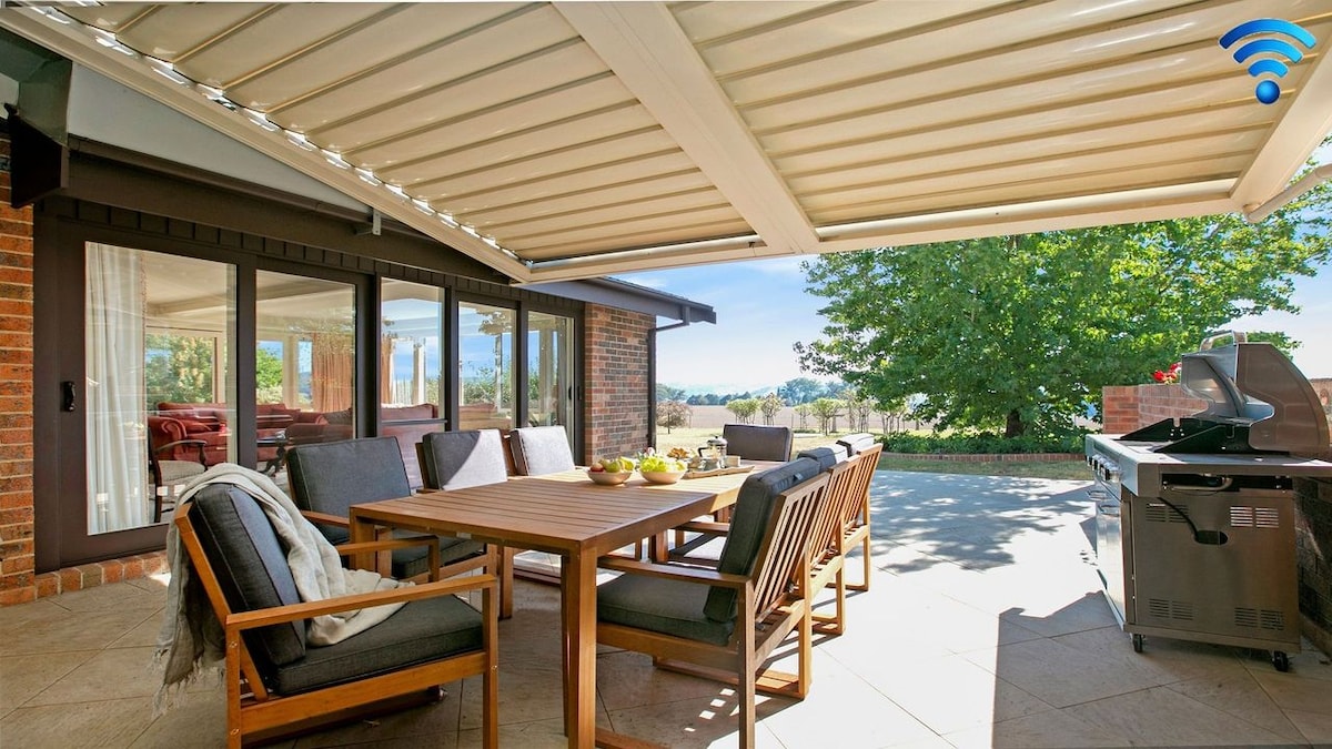 Kalamunda Estate is a spacious retreat set on 5 acres, just 3 km from Bundanoon. Perfect for large groups, it features a pool, a large outdoor BBQ deck with stunning bushland views, and a games room. The 5-bedroom house accommodates up to 11 guests, making it ideal for family gatherings or friends' get-togethers. With a vast garden, there’s plenty of room for kids to play and enjoy the outdoors.