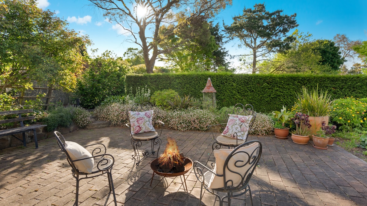 Recently refurbished (2021) cottage set in our lovely tiered private garden on the slope of Mt Alexander. Views to the Mittagong Ranges and a very quiet and peaceful location. Easy 15 min walk to train station nd many food and drink venues. A/C (heat/cool), wood burner, ceiling fan, double glazed windows. Queen bed, bathroom with heated floor, heated towel rail and a well equipped kitchenette with basic breakfast provisions including tea and coffee. Private, peaceful & perfect for couples.