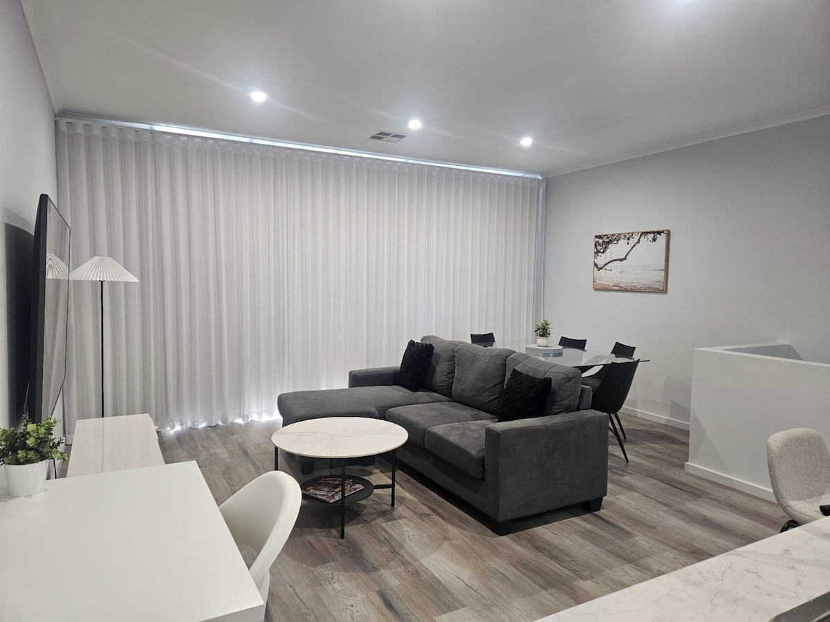 Welcome to your stylish and comfortable stay in Mansfield Park, just 15 minutes from Adelaide CBD. This modern 2-bedroom, 2-bathroom townhouse offers everything you need for a convenient and relaxed visit, ideal for couples, families, or business travellers. Discount available for 1, 2 & 3-month stays only. Select your dates and the discount will apply automatically.