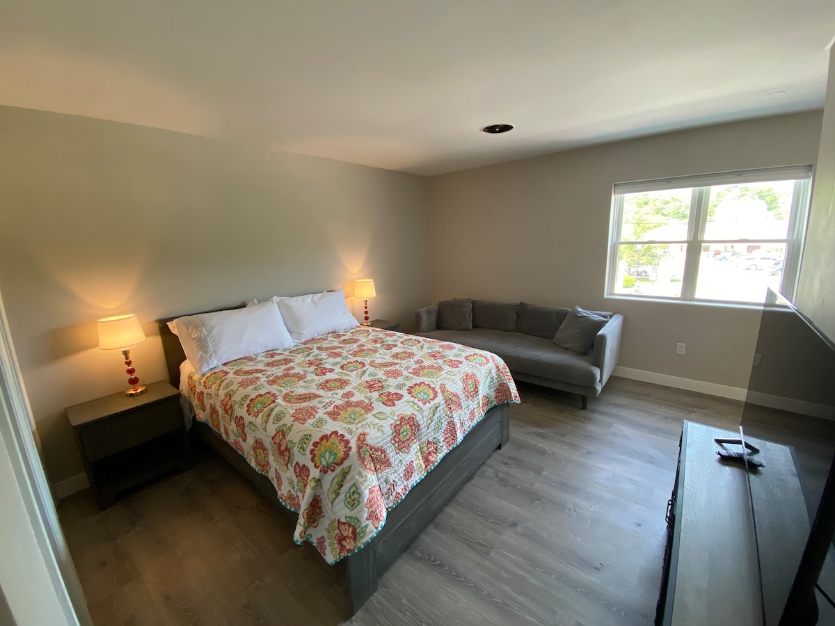 Located on the second floor of a historical building in the Village of South Londonderry, Vermont, this renovated studio suite features unique touches of modern amenities but with a Vermont feel. Your room will include a 65 inch Smart TV, WiFi, electric fireplace, lush queen bed, full renovated bathroom, small kitchenette, as well as on site parking.