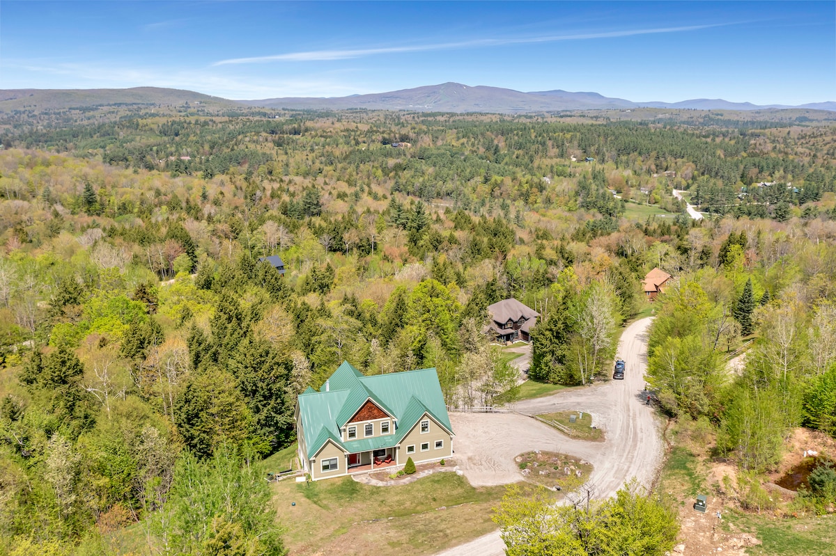 Recently constructed on ten private acres with captivating views of Okemo. Three BR, three full bath, air conditioned modern chalet, just 1.5 miles from downtown and 3 miles from Okemo’s base areas. Epic views of Okemo and surrounding mountains from every room. Cozy around the fireplace in the living room or enjoy smores outside by the firepit, or unwind on the deck. Lower level has second living room great for kids with large TV, comfy couches, Pac Man arcade, foosball and board games.