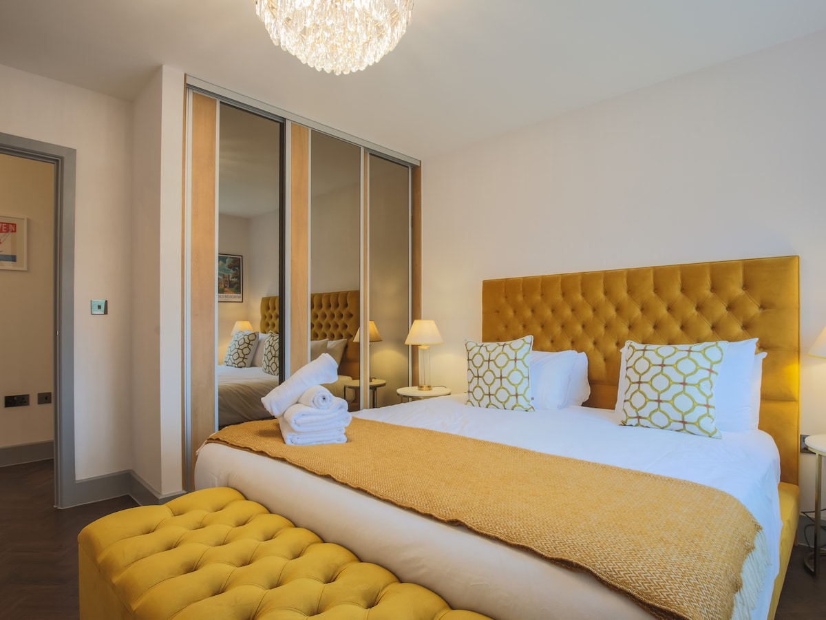 Take a break in our luxurious penthouse. The enormous south-west facing balcony offers panoramic views of the sunset each evening, making it the perfect spot to relax after a day. The interior is bright and modern, with floor-to-ceiling windows and sliding doors that fill the space with natural light. The fully-equipped kitchen has everything you need to prepare meals, and the living room is outfitted with premium audio (Sonos) and TV for your entertainment.
