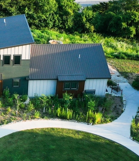 Bluffside Gardens is Decorah's newest way to stay, featuring 11 rental units, extensive garden spaces, workout room, a fitness center and direct bike trail access, we hope to see you soon! Our Redbud Series Unit 7A Unit features one king bed, pull out couch, microwave, minifridge, private patio, and a flat screen TV. Please note that there is steps with handrail to access this unit.
