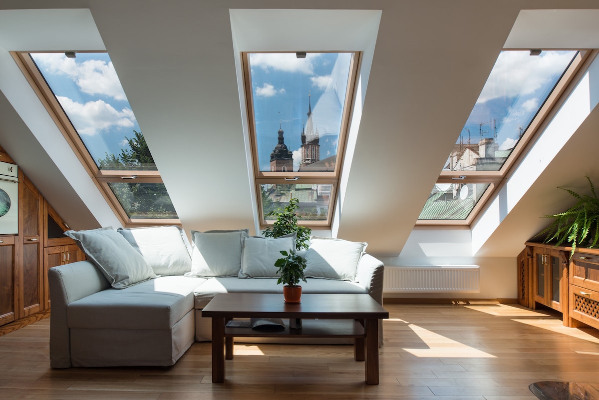 Our immaculate and spacious loft is in the heart of Krakow Old Town, at the very top of a traditional 15th century townhouse. It is an elegant studio apartment featuring a dazzling mezzanine floor space. Located at the centre of the bustling busy town, once within apartment you will be at peace, facing quiet courtyard with the view of treetops and the church bells ringing in the distance. Your time at this lovely spot in Krakow will create memories that will glow through the years to come.