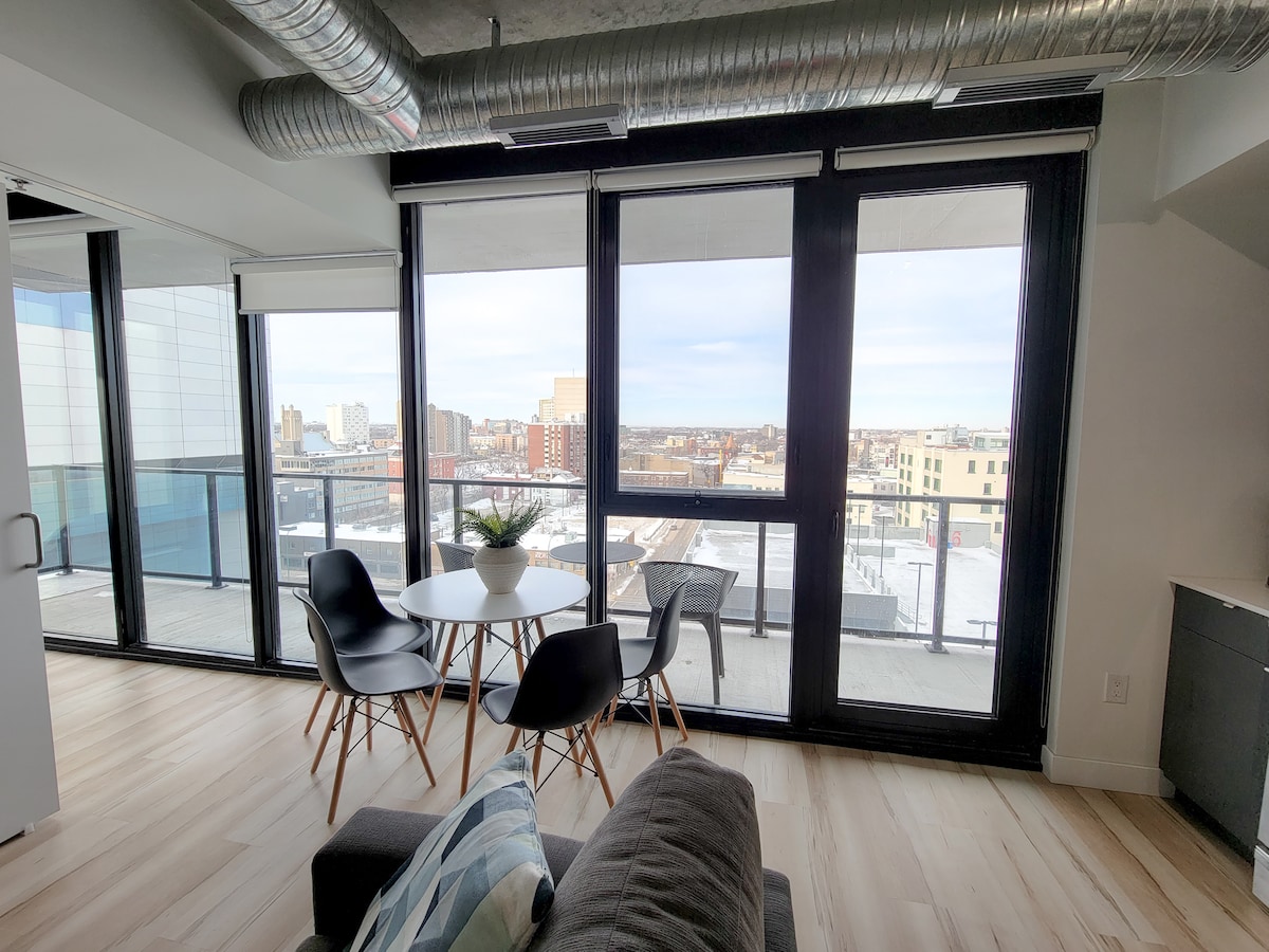 We provide a FREE parking spot in the parkade (located right beside the building) which most hosts do not provide. This is a 4 storey parkade with security on site 24/7. Book with us to enjoy a stunning suite on the 10th floor in the centre of downtown Winnipeg, with floor to ceiling windows overlooking downtown Winnipeg. A stone's throw away from Canada Life Center/BellMTS Place, True North Square, dining and nightlife, The Forks and the Historic Exchange District.
