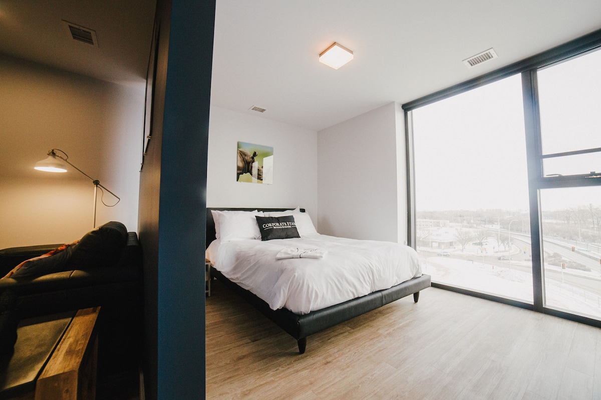 Step into modern style in the heart of downtown with our stunning Riverfront view retreat, located at Waterfront Drive and James Ave which is perfect for sports fans and business travellers alike. Immerse yourself in the vibrant Exchange District just a 3-minute stroll away, with its trendy cafes, eclectic shops, and exciting nightlife. Book now and experience the best of downtown living!