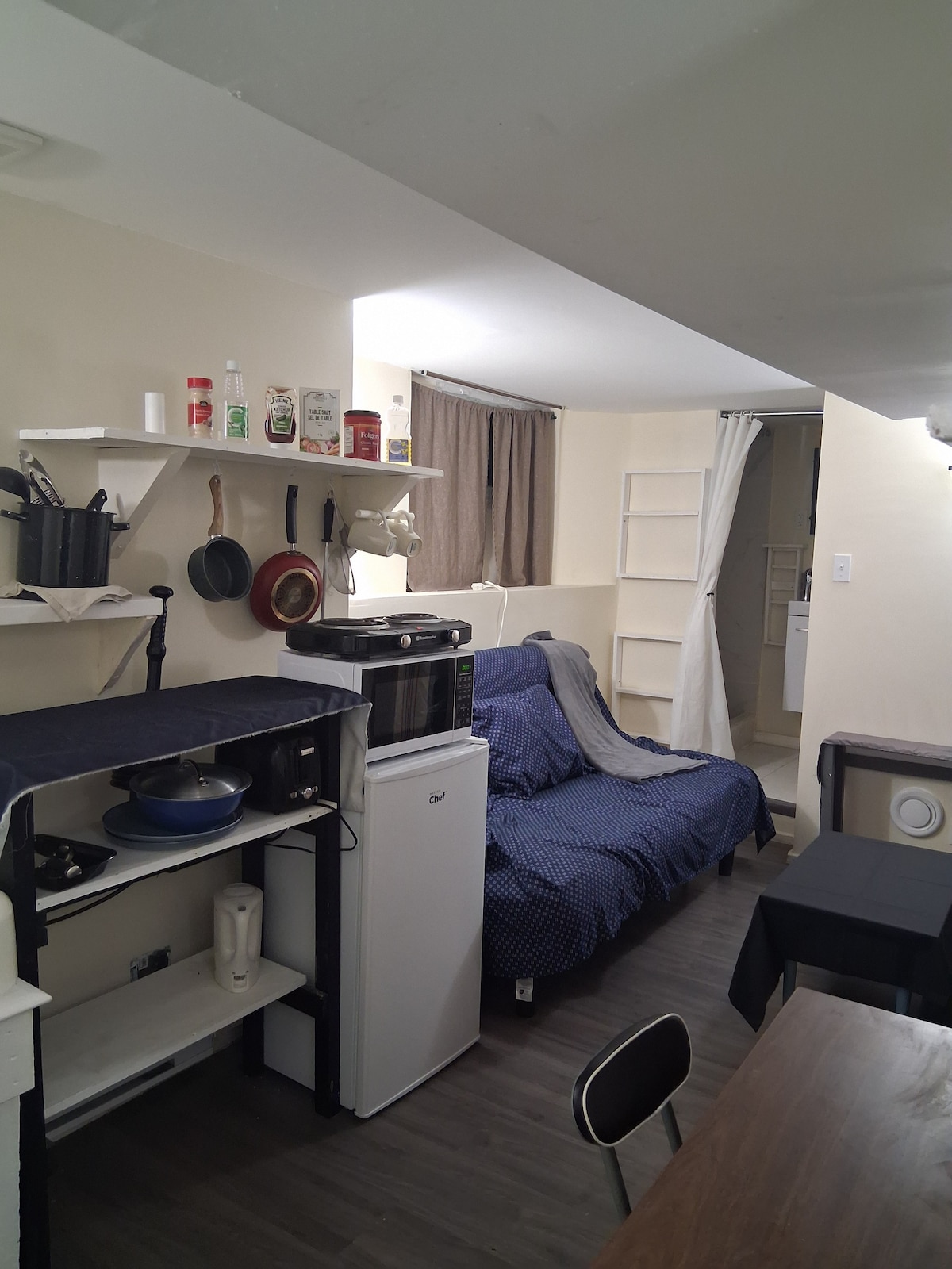 1 bedroom basement apartment has a functional kitchen which comes with cooktop, fridge, microwave, kettle, coffee brewer, cutlery as well as basic cooking and serving utensils for your use. The room is with all the comfort of a home with a queen bed that is warm and cozy for a perfect sleep. Fresh/clean towels are provided. It is located in the serene environment of the city with a functional Transit bus system. Parking on driveway available Extra private room is available if needed at a fee