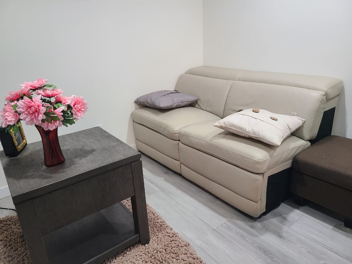 Welcome to my inviting Airbnb listing! Discover my one-bedroom basement suite with a private washroom, dining area, and living room. Enjoy a cozy retreat with a small working space table in the bedroom. Your privacy is ensured with a separate access door equipped with a keypad. The kitchen on the main floor is the only shared space, ensuring exclusive access to the basement amenities. Conveniently park up to two vehicles during your stay. Relax and unwind in this charming space!