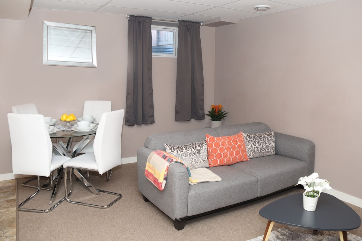 Renovated 1 Bedroom- Licensed Basement Suite w/ Private Entrance (Self Check-in). It features a Private Bath, BBQ grill at the backyard- new deck (weather permits). Wet Bar w/ Keurig, microwave etc. for your dining needs & coffee fix. Hot plate per request. Location is near Harris Meat & Grocery, 2min away from Bus Stop, 3min drive to McDonalds & 6 min drive to shopping centers. Enjoy this cozy place w your loved ones and friends. Discounts available for week long stay!