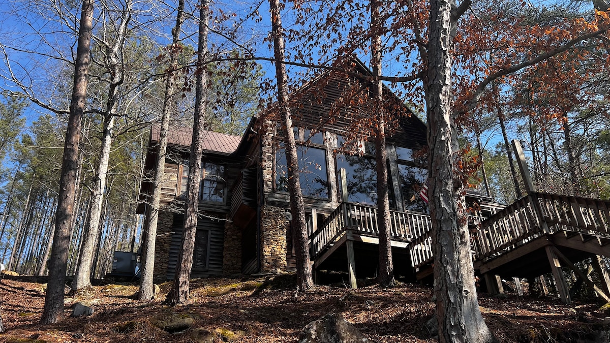 Lewis Smith Lake family home getaway in the secluded Brushy Creek area! The home includes 4 bedrooms + loft bedroom, 3 baths (sleeping for 18 guests), 2 living rooms, and boasts amazing lake views, from nearly every room. Enjoy a cabin lake home and bring the family together on the two story dock, amazing great room, 2 kayaks, and game room Bedroom 1: King bed w/ ensuite bath Bedroom 2: Queen Bed Bedroom 3: Queen Bed Bedroom 4: Loft with 2 Queen Bed Bedroom 5: King bed & 3 sets twin bunk beds
