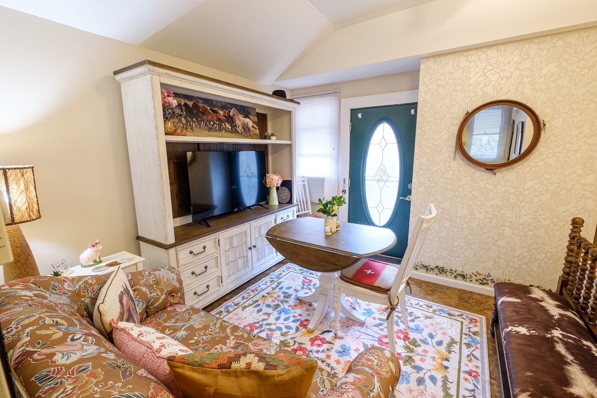 This cozy one bedroom cabin is the perfect get-a-way for singles or couples; whether you want to enjoy the peace and quiet of a country setting, visit the farm animals on the property, or hang out by the fire-pit and roast marshmallows. It is mini farm so we have a rooster and dogs that bark. This cabin is located on the Abiding Place property, a place for retreat, renewal, and restoration. Conveniently located close to High Point (Furniture Market), and other Towns/Cities of theTriad, NC.