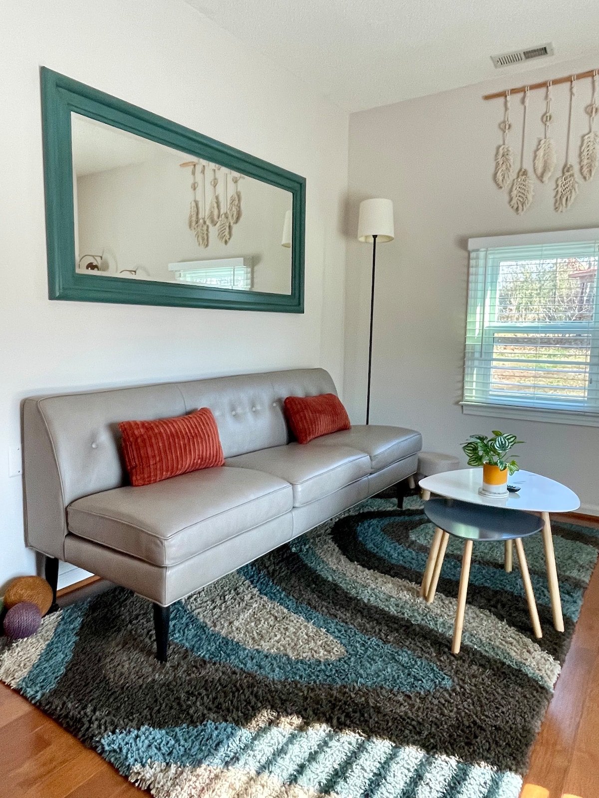 The Flat at Friendly is a renovated 700 sf lower level apartment of a mid-century home-- an easy 4 minute walk to Friendly Center; Greensboro's premier shopping, dining and entertainment destination which neighbors The O'Henry and Proximity Hotels. Features a stylish living room, modern kitchenette, new bathroom and queen bedroom. Keyless entry makes check-in and check-out easy. 5G WIFI Network. Walk to two of the area's most visited outdoor attractions: the Bog Garden and Bicentennial Garden.