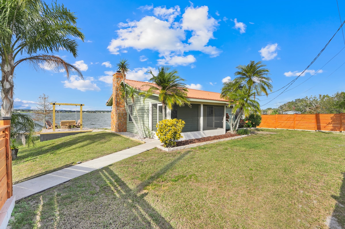 Charming, renovated 1917 cottage in beautiful neighborhood. One block from large lake with walking/running trail, 3.5 miles to Bok Tower, 12 miles to Legoland, 38 miles to Disney World, 47 miles to Universal Studios, and 63 miles to Busch Gardens. Pet friendly! King size bed in bedroom, double sofa bed in living area. Newly renovated kitchen has full size refrigerator, sink, microwave, stove top and large toaster oven. Big backyard with beautiful landscaping. Separate driveway. Lots of privacy!