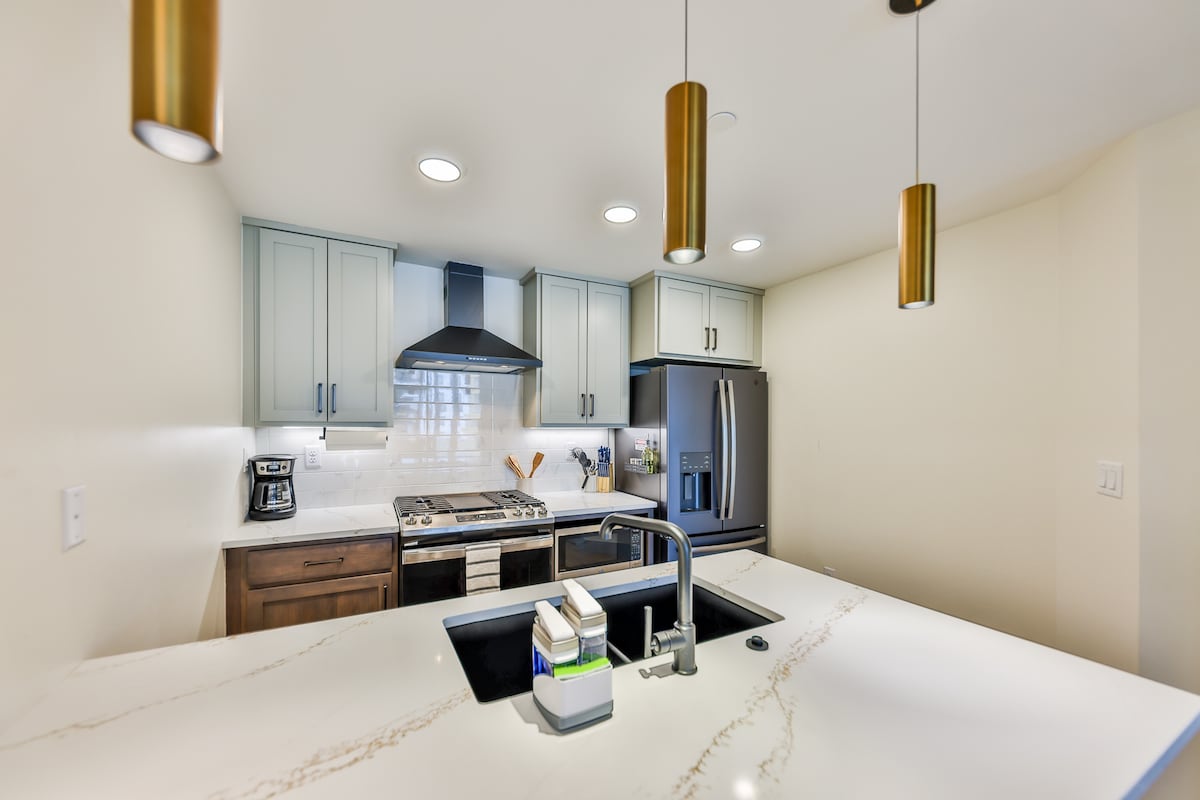 现代小屋,带热水浴缸和车库-距离山区仅几分钟