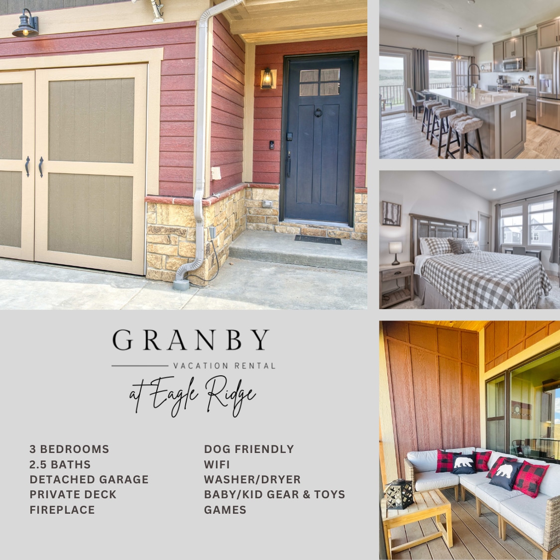 Our 2-story, 3bd, 2.5 ba, 1440 sqft townhouse is located in Granby, Colorado at the Grand Elk Golf Course. Featuring a private deck with mountain and open space views, quartz countertops, stainless steel appliances, w/d, detached garage, fireplace, and sleeper sofa. 2-min drive to the Golf Course. 25-min to Winter Park, Grand Lake, Rocky Mountain National Park, 5-min to Ski Granby and 15-min to Hot Sulphur Hot Springs. Sleeps 8. Dog and kid-friendly. Walking distance to two Lift Bus stops.