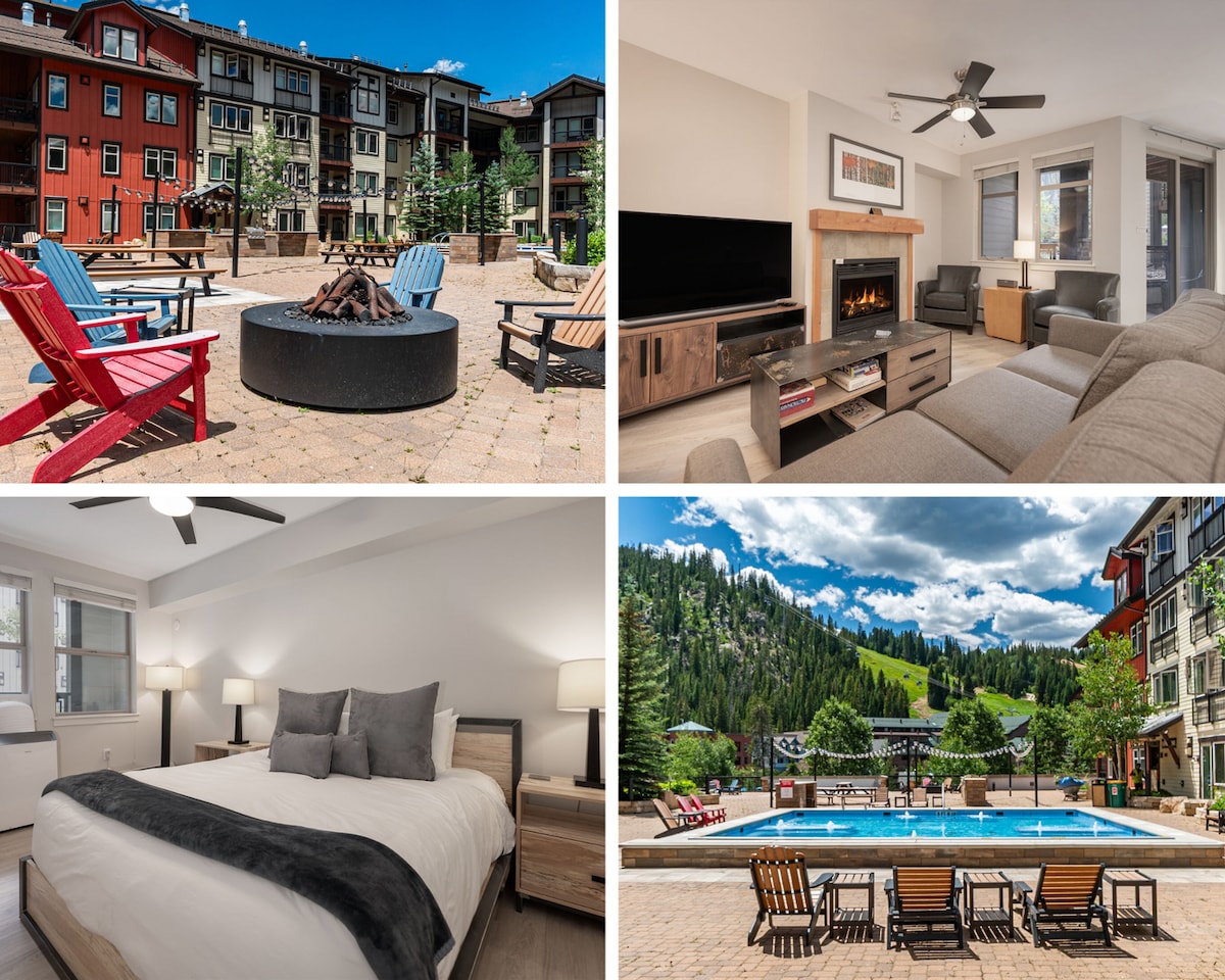 单卧室公寓,滑雪进出,热水浴缸,火坑