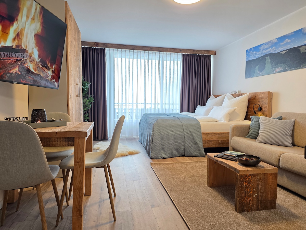 Herzlich willkommen bei fewooase! Genieße erholsame Tage in unserer Ferienwohnung Fichtenzauber in Winterberg. In unserer 1-Zimmer-Ferienwohnung erwarten Dich auf 40 m²: - Top-Lage direkt am Bikepark, der Bobbahn & den Skipisten - Balkon mit Blick auf Skipiste und Bobbahn - Platz für bis zu 4 Personen - Kostenfreier Skiraum, Fahrradabstellmöglichkeiten & eigener Stellplatz Der perfekte Ort für sportliche Abenteuer und pure Entspannung in den Bergen. Willkommen im Fichtenzauber!