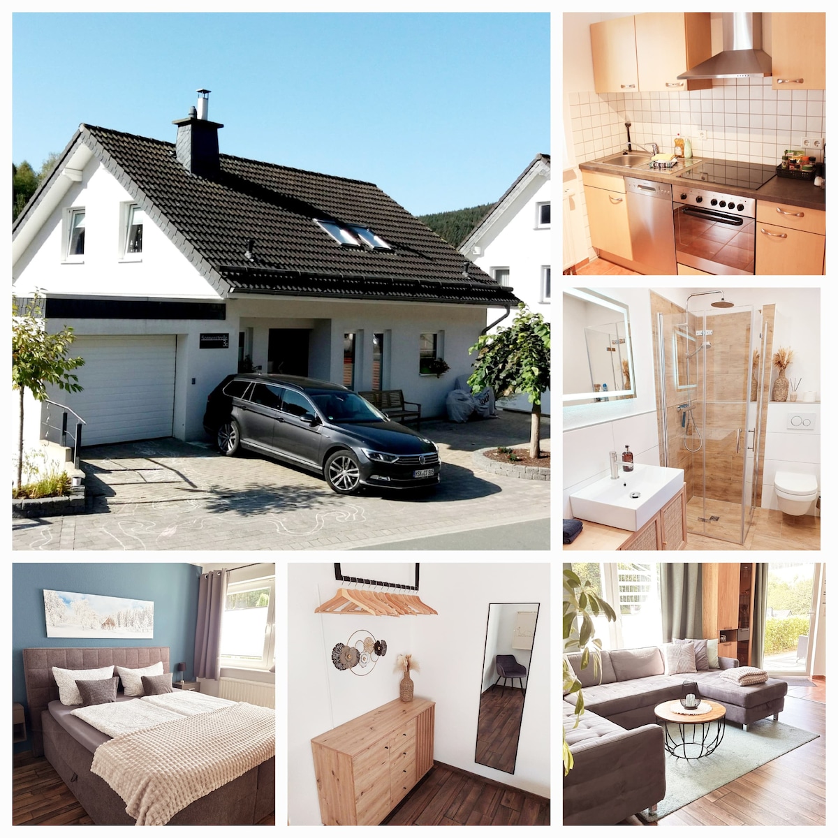 Welcome to our beautiful apartment in Winterberg! This cozy and newly renovated apartment can accommodate up to 4 people and is located directly at the ski slope and bike park. The location is perfect for those looking for central accommodation near the main attractions. . private sauna . private balcony with hammock . newly renovated 2023 . 100m to the bike park/ski slope . fireplace (elect.) . King size box spring bed . free, fast WIFI . Bicycle/ski cellar