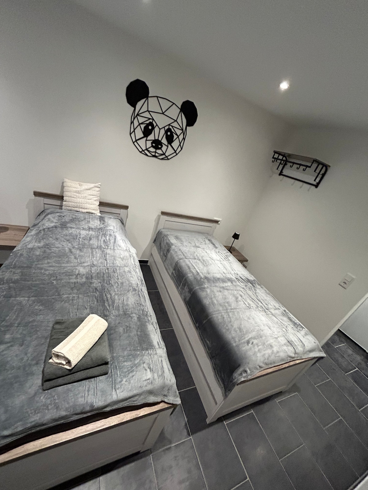 In our Apartement is everything for you, we have a shower, toilet, own sauna & a hot tub. You can check in yourself using a code lock and have your own entrance for it. In the living room is a large TV, Playstation 4, Karaoke machine, WiFi, MusicBox and a massage chair. There is a large supermarket nearby and in summer you can visit the outdoor swimming pool, which is 3 minutes away. The highway can be reached in 2 minutes with the car.