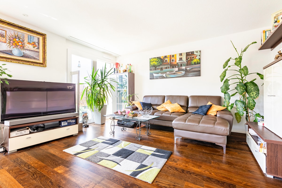 The spacious 2.5 room apartment with spacious terrace is located in a quiet location with a view of the countryside. In 5 minutes you are at the bus stop, in 10 minutes in the city center with the bus. The Whirpool and the ambience on the shared terrace invite you to spend the evenings outside. There are various grills for a BBQ. A barrier is available in the bedroom. The large sofa can also be used as a bed.