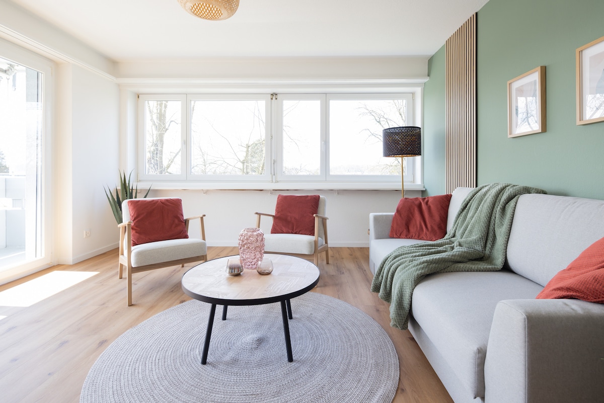 Welcome to Visionary Hospitality in Bassersdorf, Zürich. Apartment 101 is one of five at this Location. Main Advantages House => Elevator => Bus Stop in Front of House => Free Parking / Paid EV Charging Main Advantages Apartment => Garden => King Beds => Guest Bath => 75" Smart TV => Free Consumables => Free Washer / Dryer => Fully Stocked Kitchen => Iron with Board / Vacuum => Nespresso Coffee Machine, Microwave, Toaster, Kettle On Request => Vaulted Cellar for Events