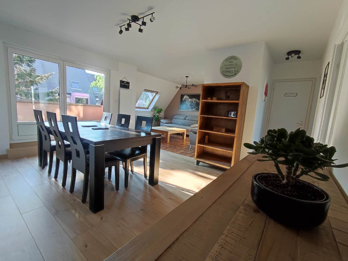 Gîte "L'envolée des rêves" spacieux appartement de 74 m², entièrement rénové, neuf et prêt à vous accueillir dans un cadre chaleureux et cosy. À 5 min du centre-ville de Colmar et des villages viticoles, ce gîte bénéfice d'un emplacement privilégié avec parkings. Idéal pour des séjours en famille ou entre amis, il peut héberger jusqu'à 6 personnes. Laissez-vous séduire par sa grande terrasse privée surélevée, un havre de paix offrant une vue dégagée sur les vignobles alsaciens et les montagnes.