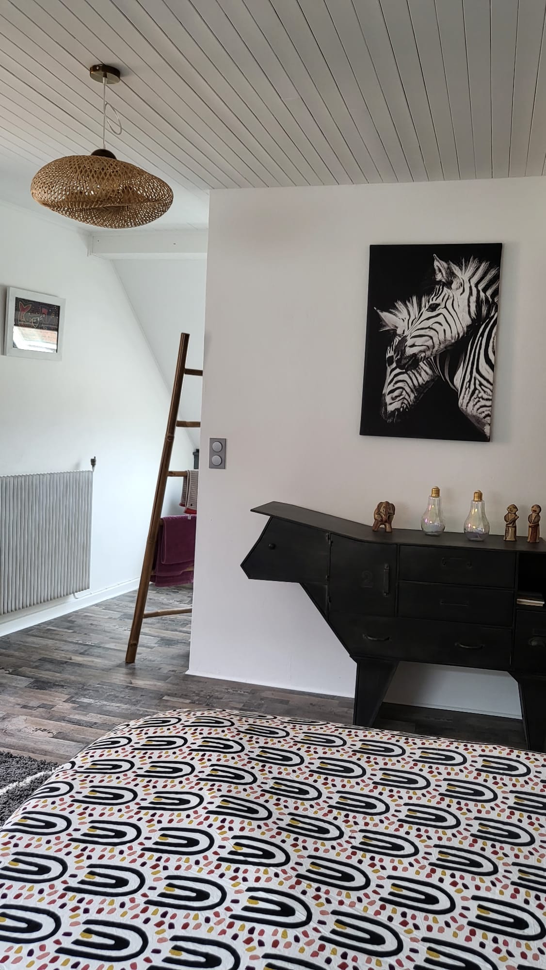 The bedroom is located on the second level of the house. The bathroom is right next door and is reserved for you. We will be discreet in order to prioritize your comfort. The attic room has a 140*190 be ; note new EMMA mattress - 03/2023, a wardrobe to store your belongings. Bed linen and towels are provided. Accommodation appreciated by people looking for simplicity. Breakfast will be prepared for you at a time that suits you and served in the dining room. Please specify this upon arrival.