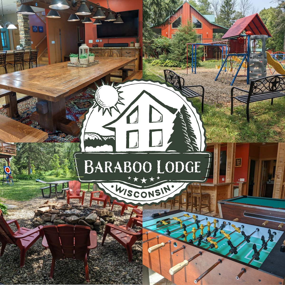 Welcome to Baraboo Lodge! Amazing home, perfect location and unforgettable experience are all waiting for you and your group. Lodge offers 3 separate living spaces, each with large TV. Huge dining table, pool and foosball table and beautiful outdoor space with games, firepit area and playset. For those looking for adventure, Devil's Lake, Wisconsin Dells attractions, Casino, shopping, nightlife, restaurants and ski hills are short drive away. Please contact us before booking for best pricing!