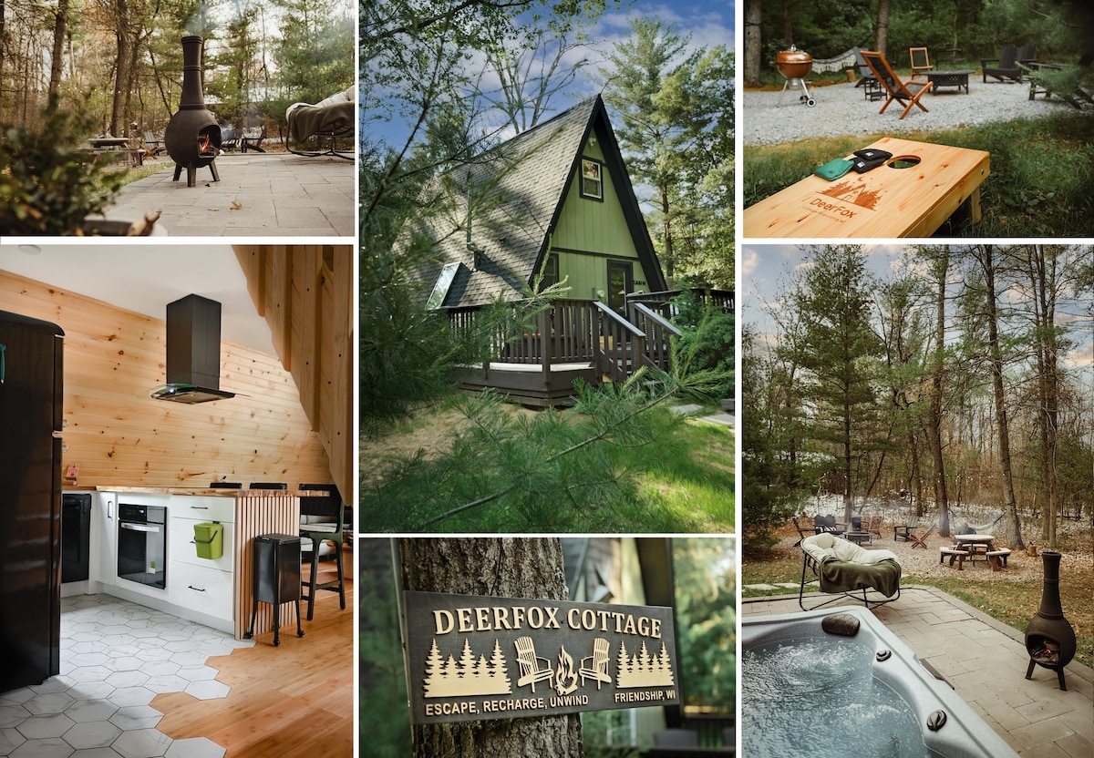 Welcome to DeerFox Cottage, a serene retreat surrounded by trees, deer, foxes, wandering turkeys, and fields of fresh air. Close to scenic trails, lakes, golf courses, and fishing spots, this little A-frame is a wonderful place for solitude and a safe haven to recharge—or for spending quality time with family and friends. Listen to the quiet of the woods, soak in the hot tub, or watch the fire crackle; slow down and savor the moment. A peaceful escape from everyday life awaits you year-round.