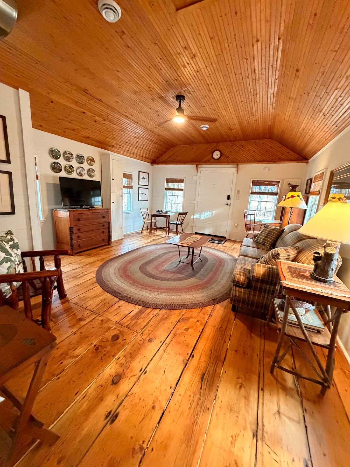 Welcome to our charming two-bedroom cottage, perfect for rejuvenation! It features a queen-sized and a full-sized bed, ideal for a small family or couple. Enjoy the double jetted tub or the luxury shower. A fully equipped kitchen, satellite TV, DVD player, and air-conditioning ensure comfort. Warm up by the Vermont wood-burning stove from November to April. Enjoy the pond view, Baraboo bluff, and meet our friendly horses and dogs. We look forward to welcoming you!