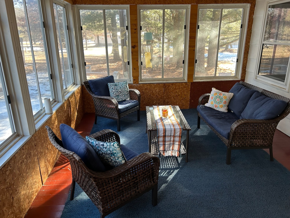 Welcome to our charming two-bedroom cottage, perfect for rejuvenation! It features a queen-sized and a full-sized bed, ideal for a small family or couple. Enjoy the double jetted tub or the luxury shower. A fully equipped kitchen, satellite TV, DVD player, and air-conditioning ensure comfort. Warm up by the Vermont wood-burning stove from November to April. Enjoy the pond view, Baraboo bluff, and meet our friendly horses and dogs. We look forward to welcoming you!