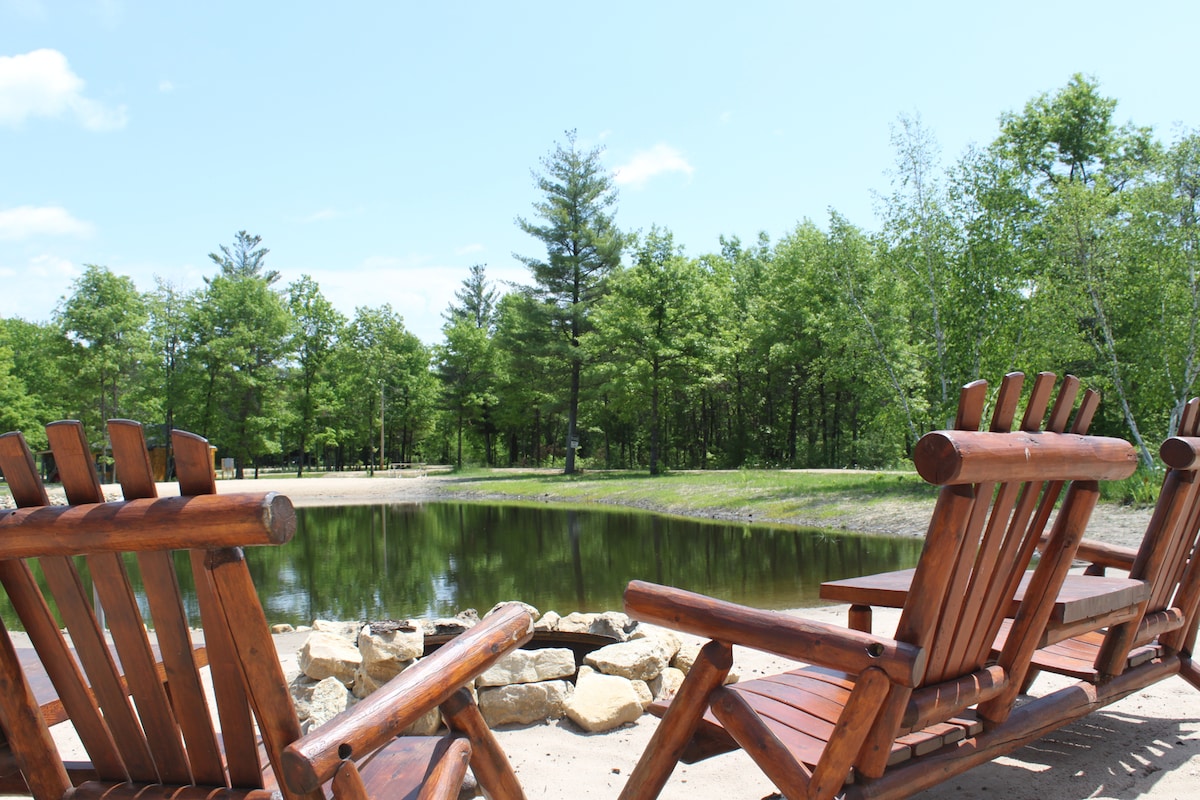 Welcome to The Loft – one of our largest cabins on our beautiful 7-cabin property! Overlooking two sandy beaches and scenic ponds, this private retreat features a cozy three-seasons room and an indoor Jacuzzi tub for ultimate relaxation. Enjoy board games on the screened-in porch, lounge on the beach, or unwind by your private fire pit. Located just minutes from Castle Rock Lake, The Loft offers the perfect blend of nature and serenity. Guests can book one or multiple cabins.