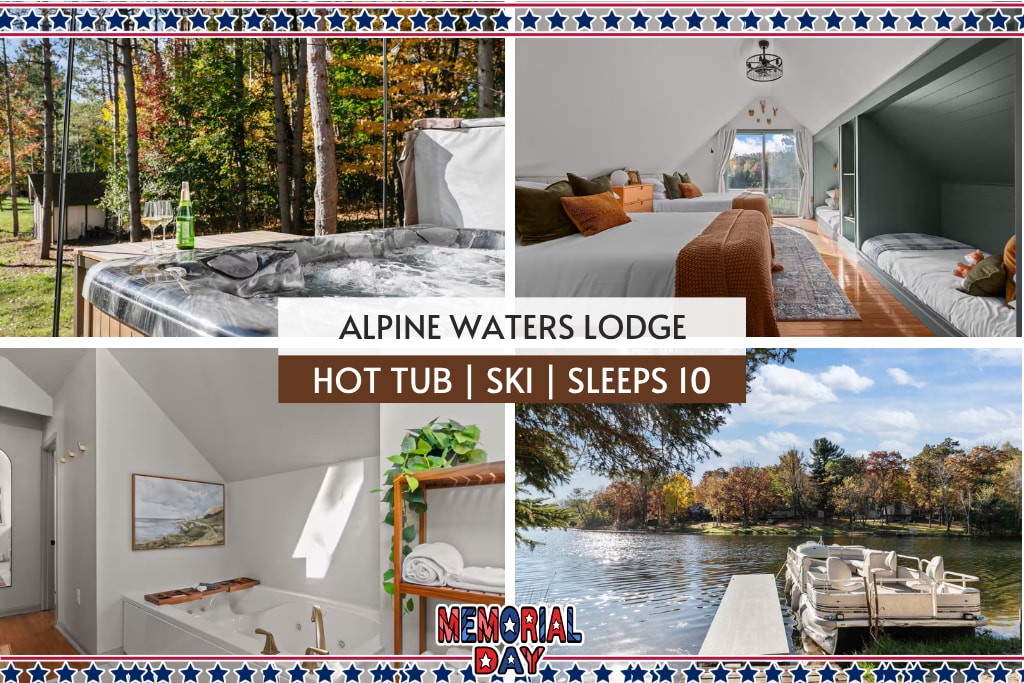 This fully remodeled a-frame style cabin sits in the old forest of Lake Alpine: perfect for a family or couple getaway. Lake Escape has all the things you’d expect from a lake house getaway: lake/beach access, kayaks, canoe, swimming, fishing, hot tub, board games, yard games, dock. But, Lake Escape has so many bonus secrets hidden within! You'll discover a built in escape room, bookshelf doors, tricky puzzles, underground speakeasy, put-put golf, 90s video games, private forest, and more!