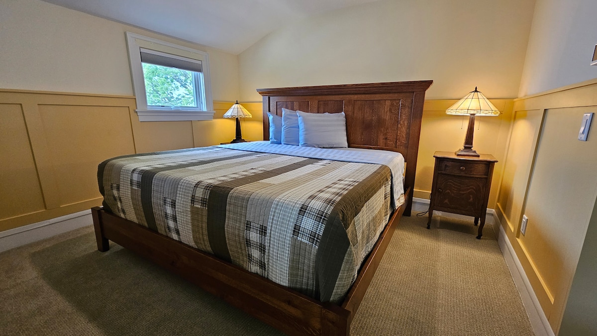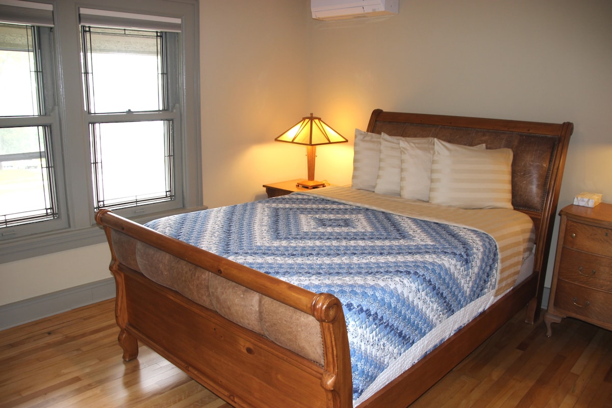 You won’t want to leave this charming, one-of-a-kind place. The Master Room has a queen bed on the second floor of this historic house. It also includes a private porch, weather permitting, with a sitting area with a beautiful view of Lake Delton. Located on a quite tranquil pine wooded acre, minutes from the Dells, Sandra spa, water sports, skiing, State Parks. Fresh Breakfast available during your stay if you so choose. Perfect place to relax and recharge and enjoy what the area has to offer.