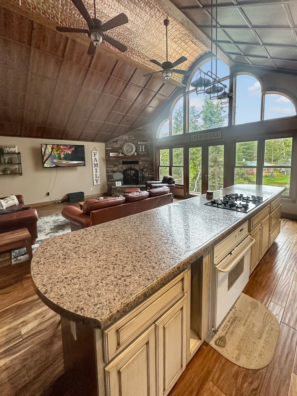 Location, comfort, and views for miles! This sanctuary is minutes from the Kickapoo Valley Reserve, Wildcat Park and nestled on 10 private acres with stellar views from the wraparound deck. This is THE place to immerse in nature then relax with a meal and a cozy fire. Soak your tired muscles in the claw foot tub after a fun day out exploring. Enjoy the cold A/C or the efficient fireplace, chef's kitchen. Families enjoy the infant/kid gear, and clean single level space for a low stress retreat