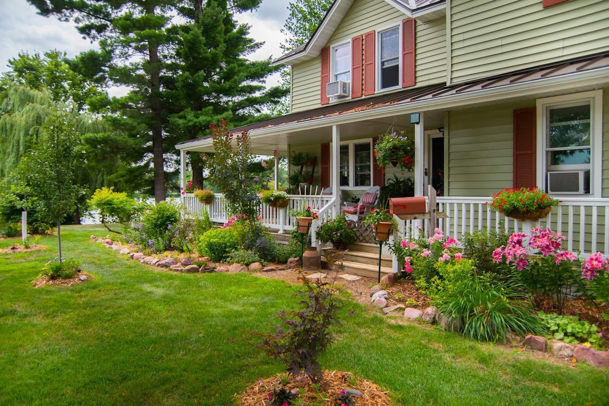 This family-size, fully-enclosed suite with a separate entrance from the host's attached house offers all the comforts of home within 15 min. of Minocqua, Rhinelander, and premier outdoor experiences- hiking, biking, fishing, boating. Inside find bright spaces, full log beams, and a hobbiton feel; open concept living area with fully stocked kitchen, table, bunk beds, large couch, TV and Wi-Fi; bedroom with queen bed and stowed air mattress; full bath; play room. The entire suite space is yours.
