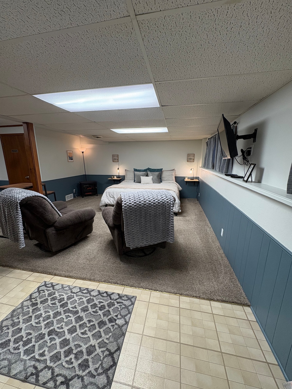 This family-size, fully-enclosed suite with a separate entrance from the host's attached house offers all the comforts of home within 15 min. of Minocqua, Rhinelander, and premier outdoor experiences- hiking, biking, fishing, boating. Inside find bright spaces, full log beams, and a hobbiton feel; open concept living area with fully stocked kitchen, table, bunk beds, large couch, TV and Wi-Fi; bedroom with queen bed and stowed air mattress; full bath; play room. The entire suite space is yours.