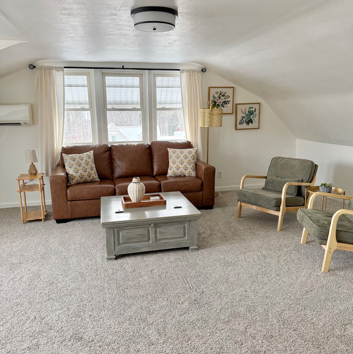 This apartment was added to the back of our detached garage about 5 years ago. Low or no VOC products were used throughout construction. Brand new appliances installed with an oven big enough to cook the biggest turkey I’ve ever dreamed of. Spectacular ridge top views and beautiful starry nights. Hiking and cross country ski trails on the property of about 75 acres. Pick hazelnuts in the fall, collect and boil your own maple sap in the spring and pick blueberries in the summer.