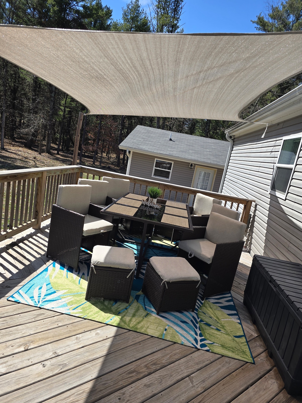 This unique place has a style all its own. The house is decorated in an eclectic western style with many antique and primitive elements. It has a great outdoor patio area that will provide plenty of space for nights of laughter and fun for the entire family. The house features a fully furnished kitchen and a laundry area for all your needs. Close to Chapter on Horizon, great trout fishing, and the Kickapoo Reserve, there is always plenty to do in the area.