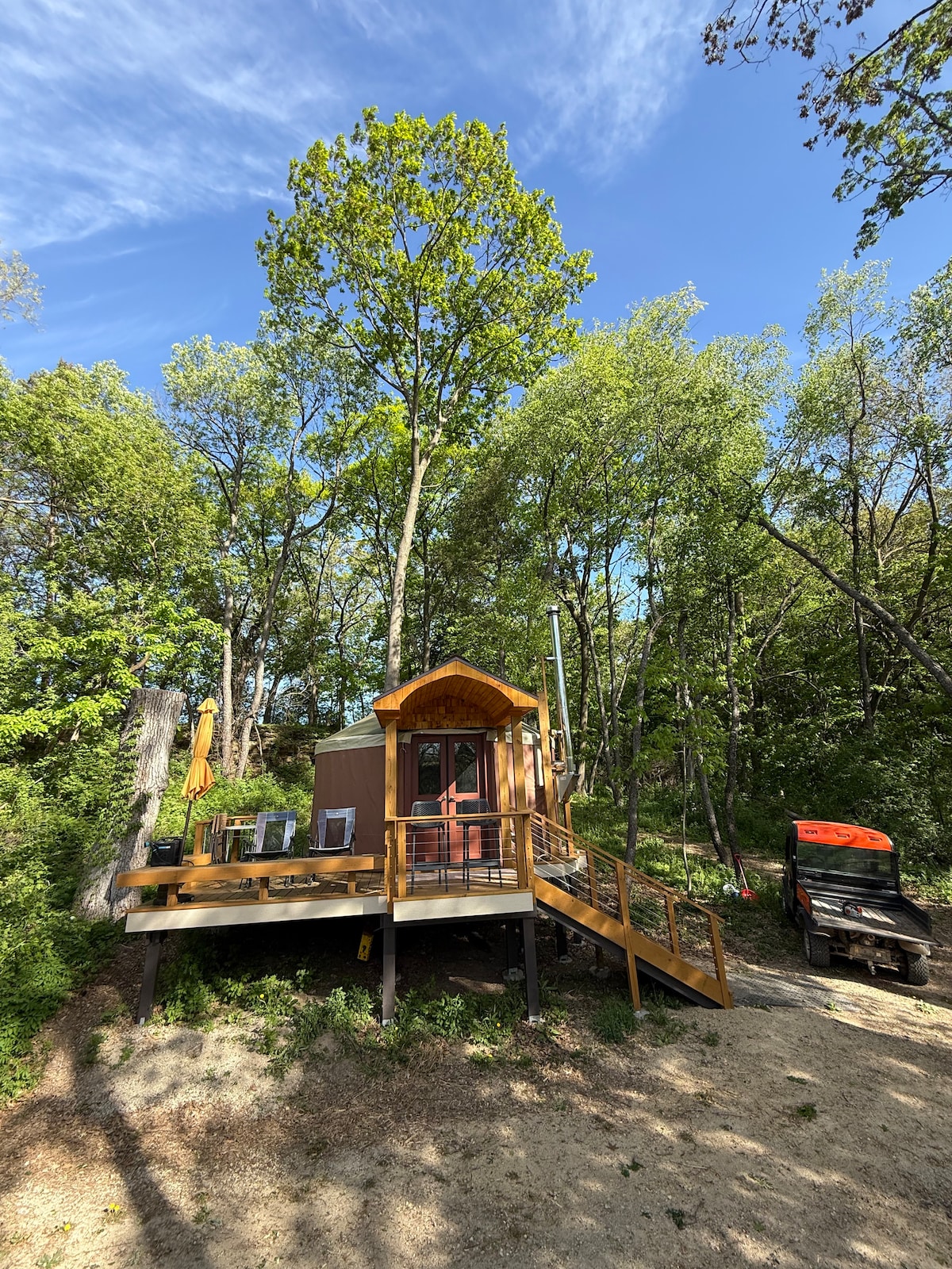 YurtSimple is where life slows down and people unplug. It’s forest bathing in nature. It’s getting away from it all to spend time with a partner, by oneself, and sometimes with pets. You’ll be driving past YurtCation (about 300 feet past YurtCation) to get to YurtSimple. YurtCation is 20’ in diameter and YurtSimple is 16’ in diameter. Wood and charcoal are provided. You may cook on the indoor wood stove top, or visit any number of great restaurants 2 miles away. You can even order pizza delivery