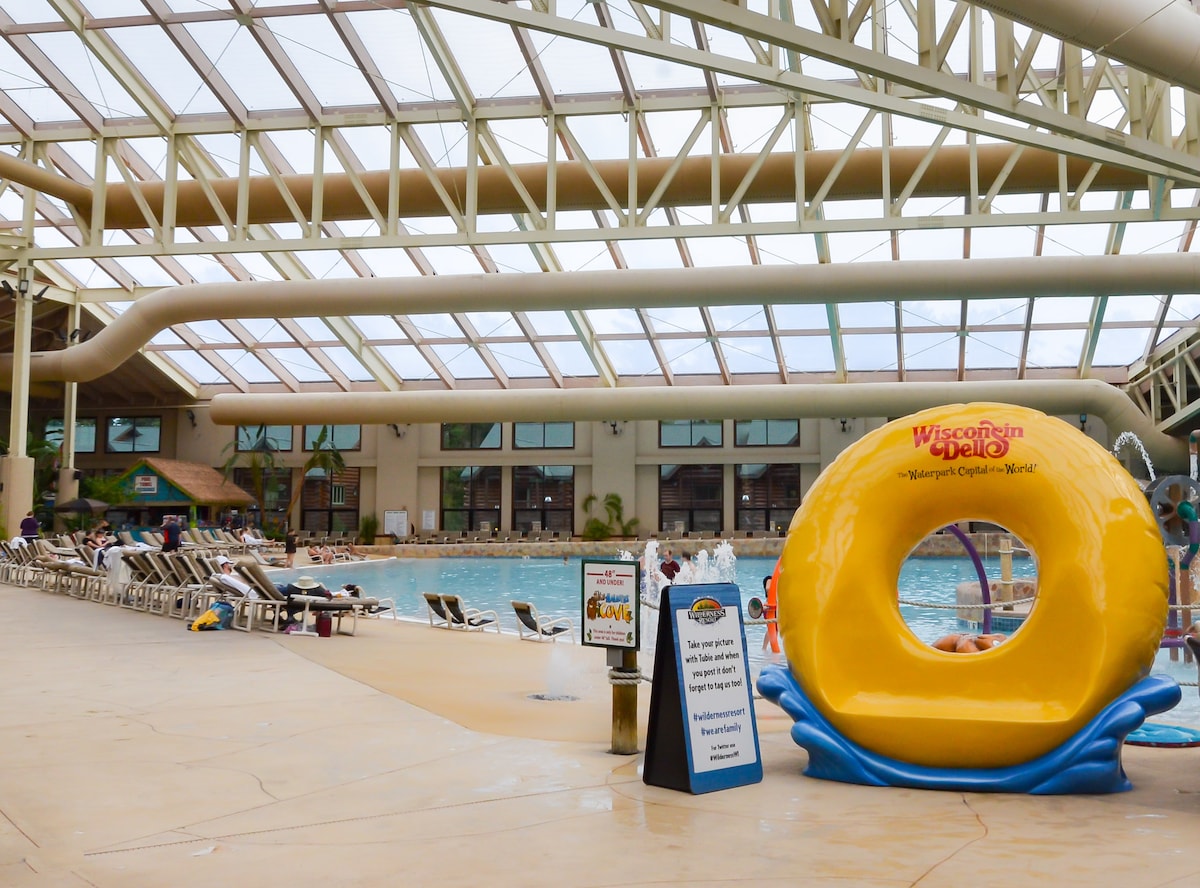No resort fees! Experience all the Wisconsin Dells has to offer while staying in this luxurious condo, located inside the action-packed Chula Vista Resort! Enjoy the resort's restaurants, 18-hole golf course, zip line and so much more! Minutes from all of the area's attractions including Mt. Olympus, Noah's Ark and hiking trails! Then relax in our Jacuzzi tub, cozy up to our two fireplaces, hang out in our spacious living room or cook a family meal in our full-size kitchen!