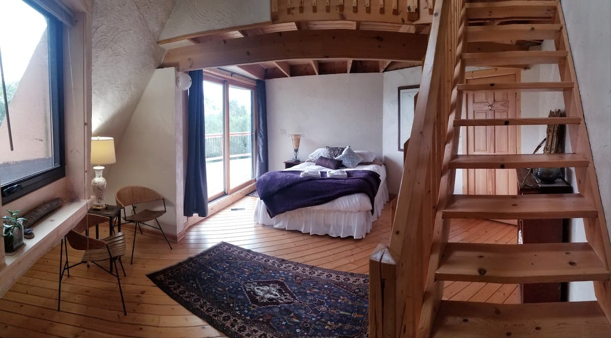 Welcome to Turtles Landing at River Haven; a dome on 322 acres; only 9 miles North of Menomonie, 75 miles from the Twin Cities, & a 40 minute drive from Eau Claire, but a world apart. Come retreat in Butterfly Abode, one of the private rooms (or ask about renting the whole dome.) Inside, common areas include a library, sauna, gym, baths & kitchen. Outside, explore hiking or snowshoeing on 11+ miles of trails in & around the forest & Hay River, or stay warm next to a campfire under the starry sky